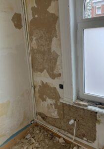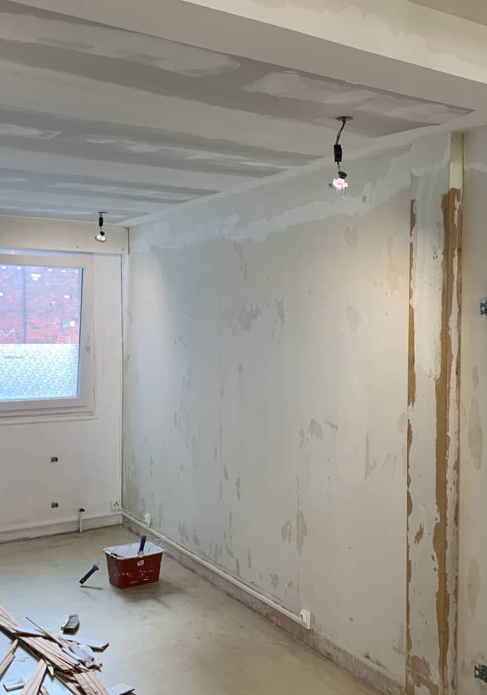 • Rebouchage des trous et petites fissures : réparation des murs abîmés après le retrait de cadres, chevilles ou meubles fixés. Nous utilisons des enduits adaptés à chaque support (plâtre, placo, béton…).